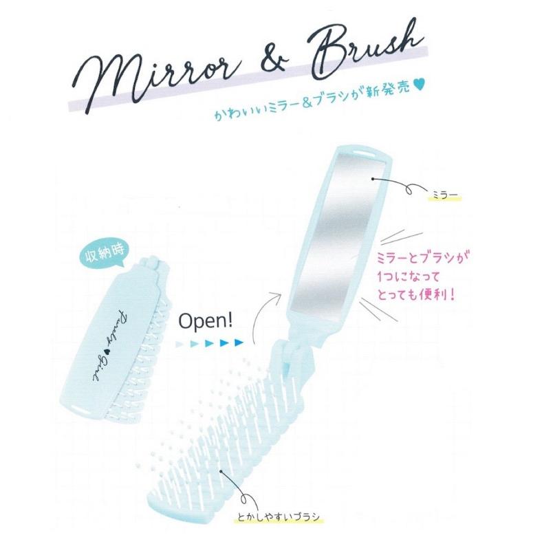 ブラシ 女の子 ガールズアイテム ミラー付き 洋服ブラシ 小学生 身だしなみ コンパクト おしゃれ かわいい 女子 中学生 高校生
