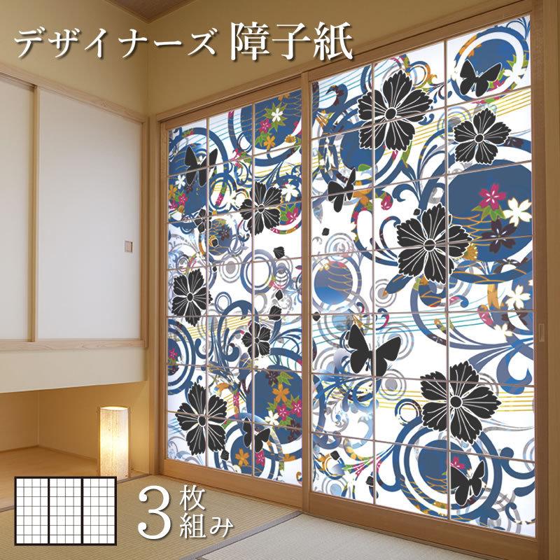 障子 モダン 破れにくい強化障子紙 モダンでおしゃれな和室に張り替え Diy 3枚組 縦140cm デザイン 洋風デザイン和柄 花 蝶 なでしこ サイズ 青 障子紙 柄 おしゃれ